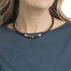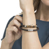Az ULMI a személyes vadonod minimalista csomagban. A karkötő fonott bőrszíjból áll (kétszer körbetekered a kezeden), amelyet öt természetes kőgyöngy díszít, amelyeket apró ötvözet 'ütközők' választanak el. Ezek a karkötőnek egyedi megjelenést kölcsönöznek, miközben mindent a helyén tartanak. Ugyanezt az ötvözetet használják a kapcsán is, amely könnyen rögzíthető és a legkeményebb körülményeknek is ellenáll.
